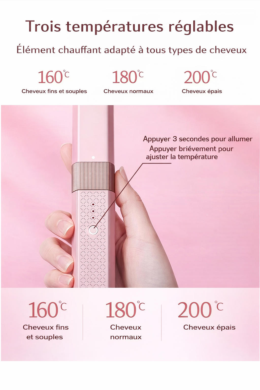Oui, il est idéal pour les retouches sur cheveux lisses, ondulés ou légèrement bouclés. Il est particulièrement efficace pour discipliner les mèches, réduire les frisottis et lisser rapidement.