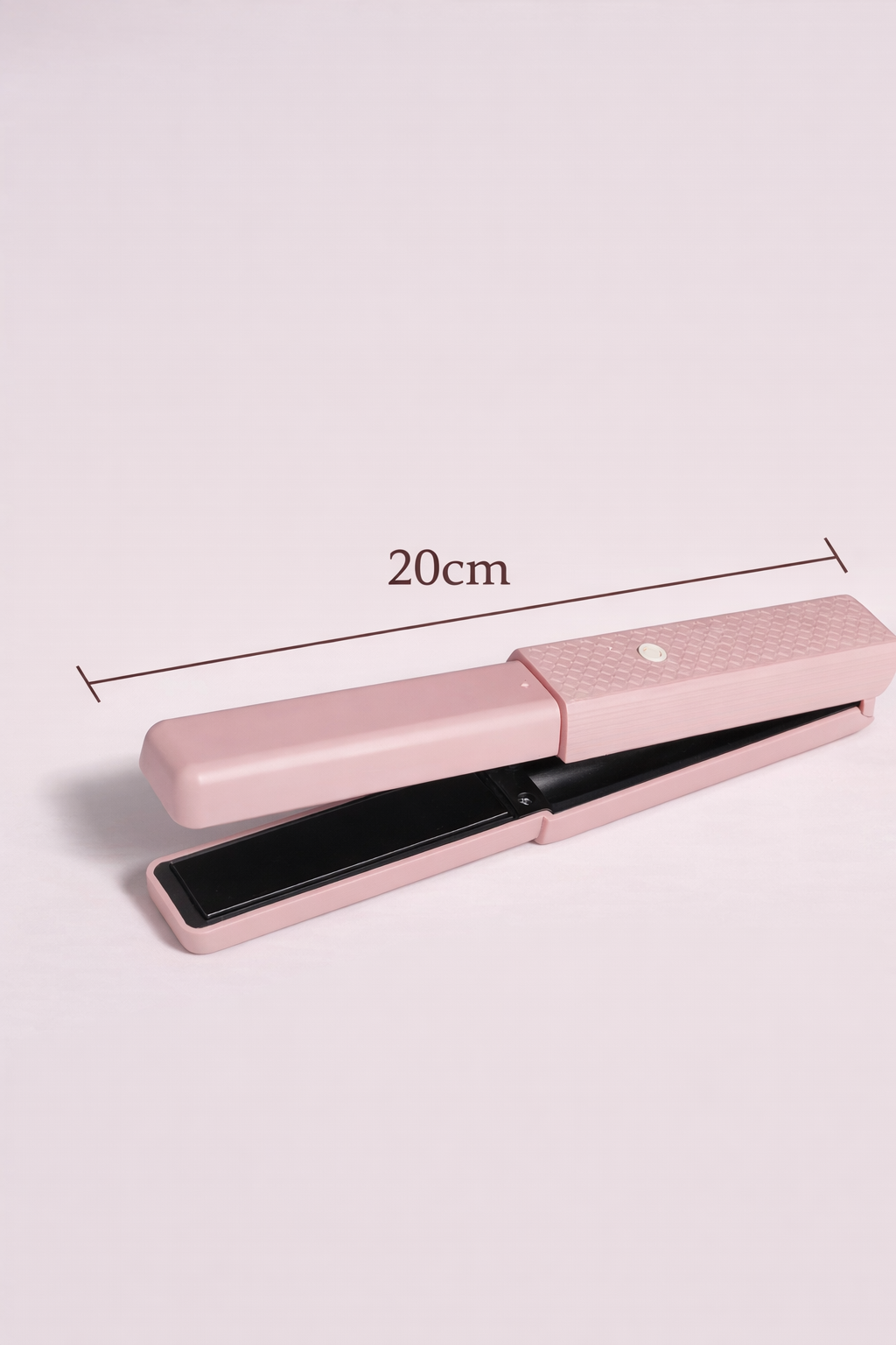 Notre lisseur compact et élégant se glisse dans votre sac et vous permet de retoucher vos cheveux n’importe où, en toute discrétion.